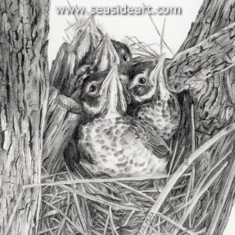 Anticipation a graphite drawing by Sue deLearie Adair (New York). The art measures 2 1/2" x 2 1/2" and the...