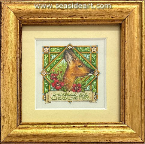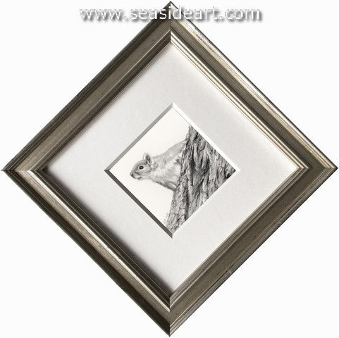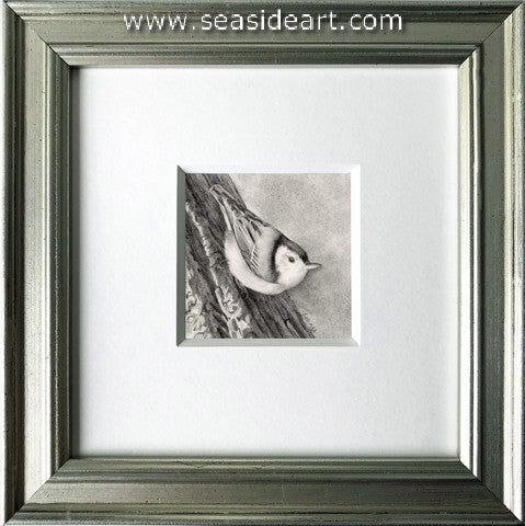 Backyard Sprite a graphite drawing by Sue deLearie Adair (New York). The art measures 2" x 2" and the frame...