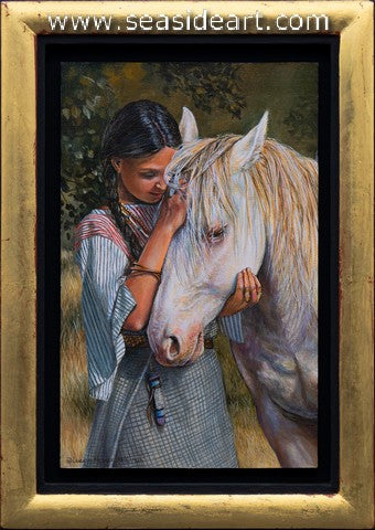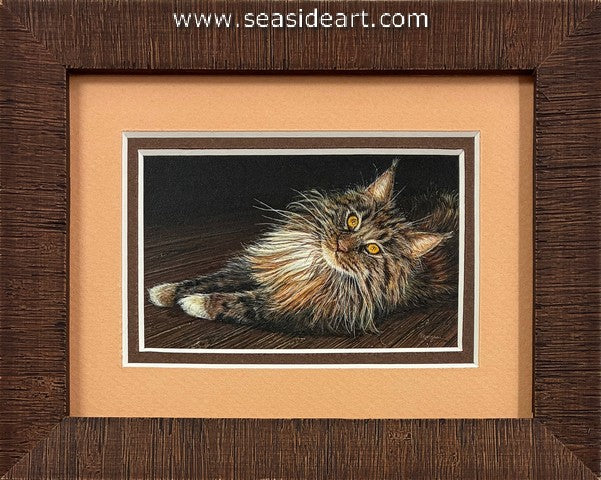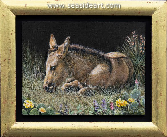 Snuggled In an oil painting by Karla Mann (Virginia). The art measures 4 1/2" x 4 1/2" and the frame...