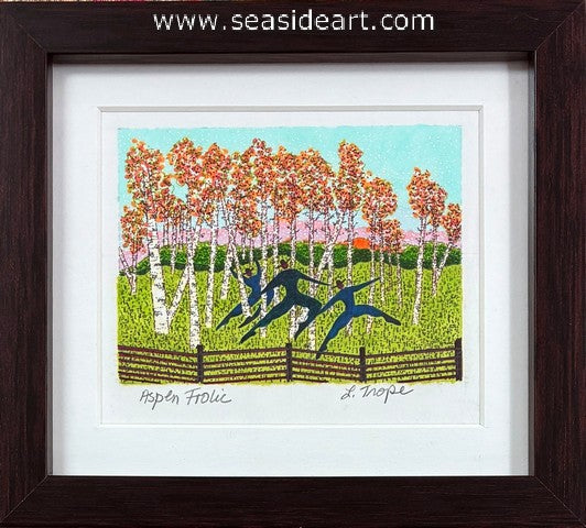 Aspen Frolic a pen and ink by H. Linda Trope (Maryland). The art measures 3" x 4" and the frame...