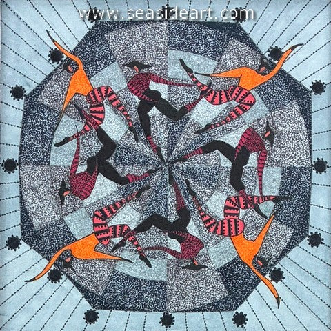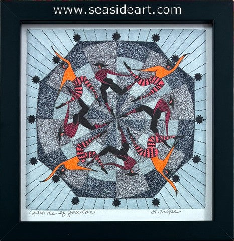 Catch Me If You Can a pen and ink by H. Linda Trope (Maryland). The art measures 5" x 5"...
