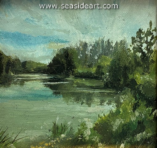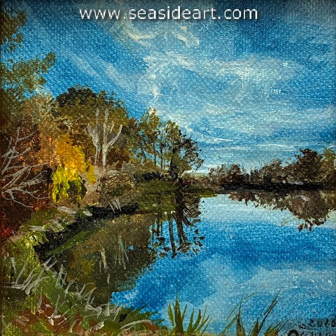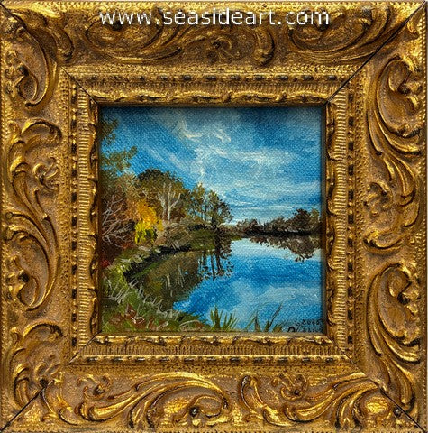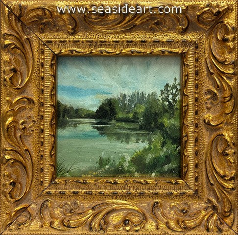 Overcast Marsh an acrylic painting by Lorraine Dey. The art measures 3" x 3" and the frame is 5" x ...