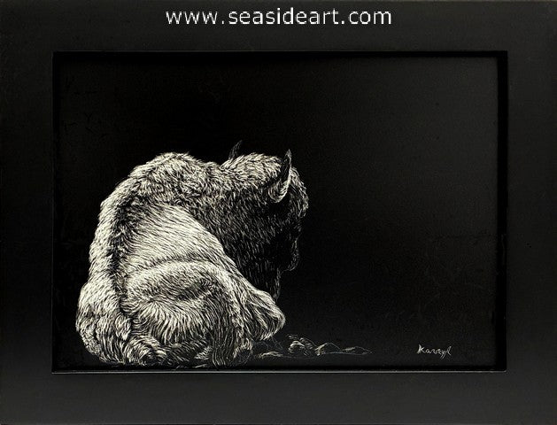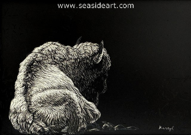 Introspection a scratchboard by Karryl Salit (Colorado). The art measures 5" x 7" and the frame is 6" x 8". ...