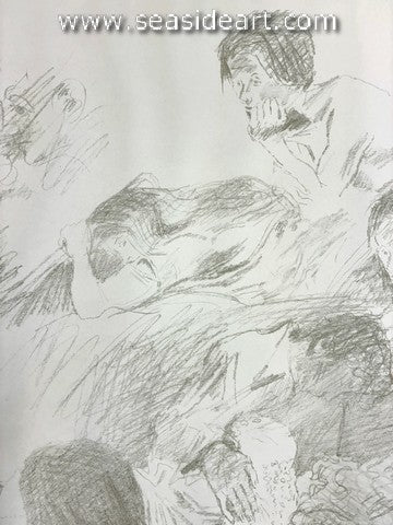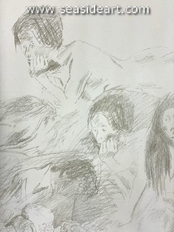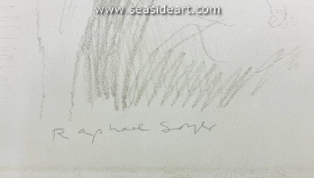 Lovers, Etc. is an original lithograph by Raphael Soyer. The art size measures 18″ x 22″ and the vintage brown...