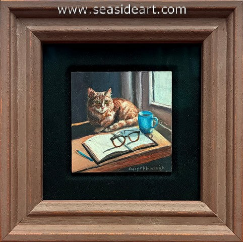Morning Journaling an oil painting by Suzanne Mikusevich (Ohio). The art measures 2" x 2" and the frame is 4...