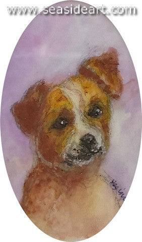 A Penman's Soul a mixed media painting by Joanne May (Illinois). The art measures 3 1/4" x 2 3/4" and...