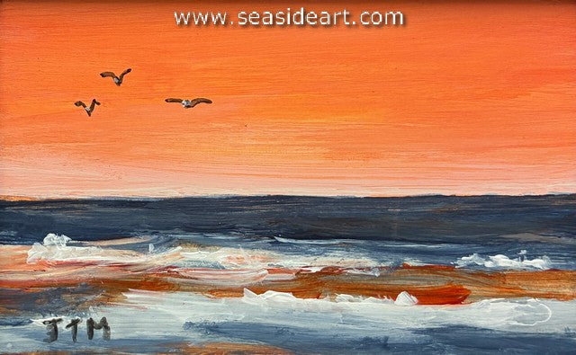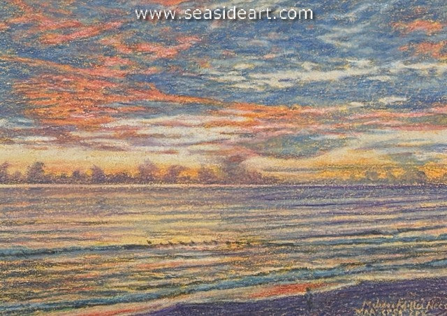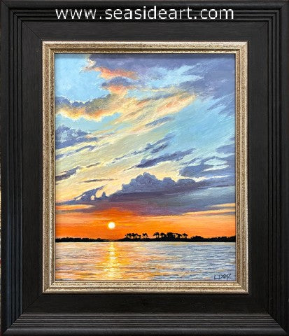 South Bay Sunset an acrylic painting by Lorraine Dey. The art measures 10" x 8" and the frame is 13"...