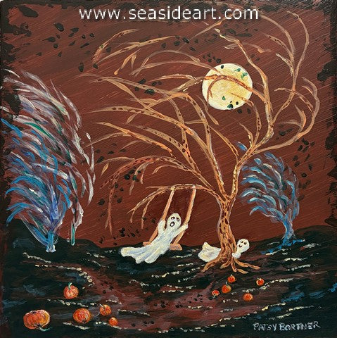 Too Windy to Swing Tonight an acrylic painting by Patsy Bortner (Kansas). The art measures 5" x 5" ; gallery...