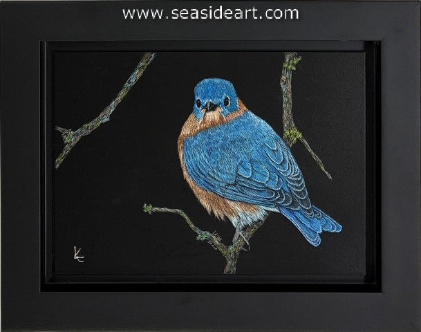 Bluebird is an original scratchboard by Lynn Kibbe. The art measures 5″ x 7″ and the frame is 7″ x ...