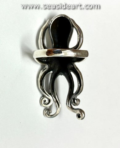 A sterling silver ring with a large octopus, it measures 1 3/4" x 3/4". The ring is a size 9...
