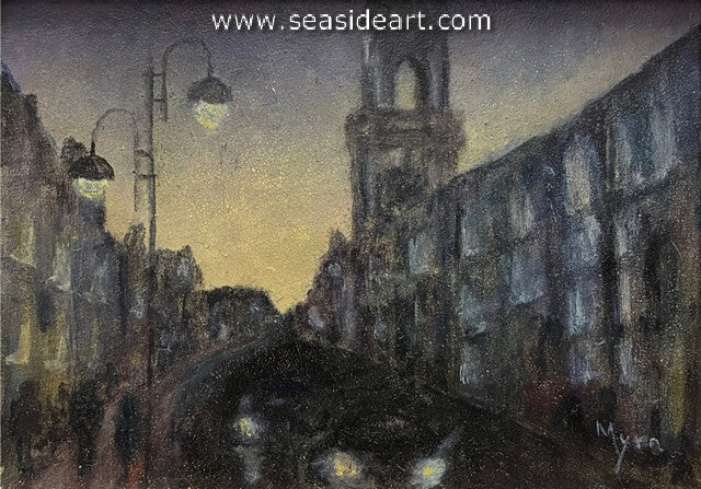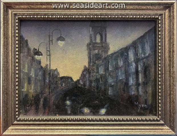 Foggy London an oil painting by Myra Carrier (Florida). The art measures 2 3/4" x 3 3/4" and the frame...