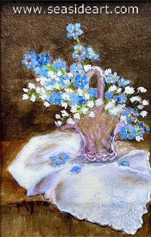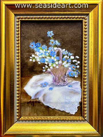 For Get Me Not an oil painting by Myra Carrier (Florida). The art measures 2 3/4" x 1 3/4" and...