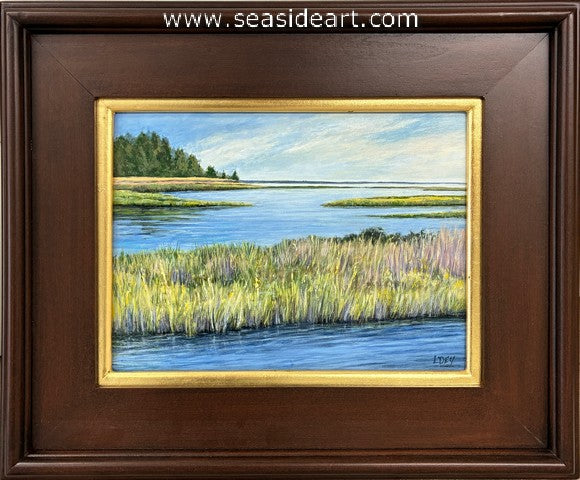 Marsh Waterways is an acrylic painting by Lorraine Dey. The art measures 9" x 12" and the frame measures 11...