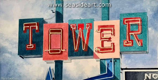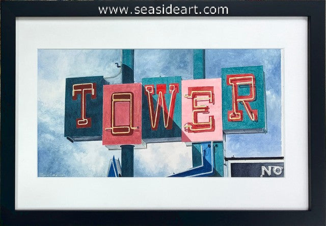 Tower Motel a watercolor painting by Tony Craig. The art measures 8″ x 15 1/2″ and the frame is 13...