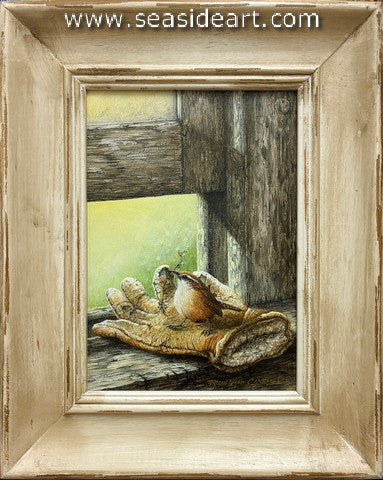 Hanging Onto the Day is an acrylic painting by Robin Naomi Campbell. The art measures 5" x 5" and the frame...