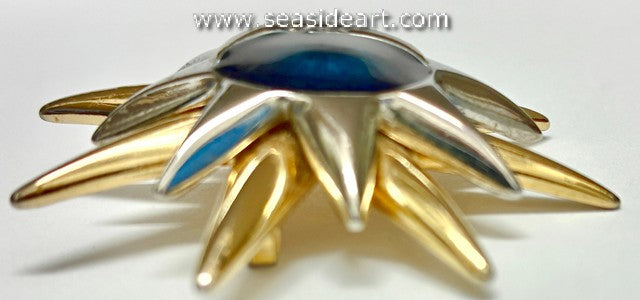 Sun, Moon and Star Burst Pin by Liz Claiborne. The vintage pin is gold and silver tone with blue enamel,...