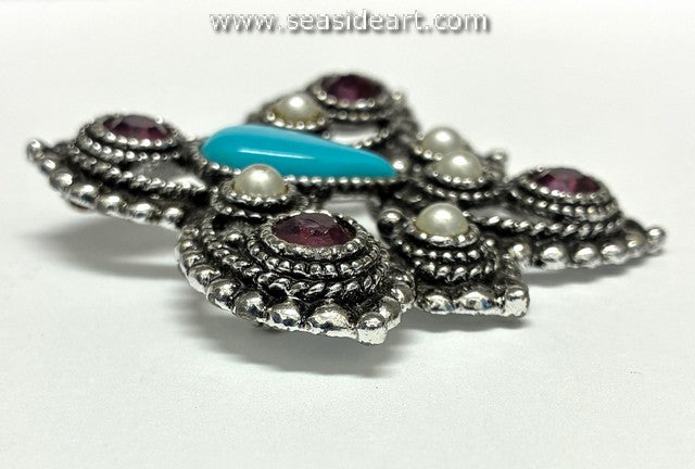 A beautiful little vintage sterling silver pin/pendant by Talleres Los Ballesteros with a synthetic amethyst, circa 1950s. The floral design...