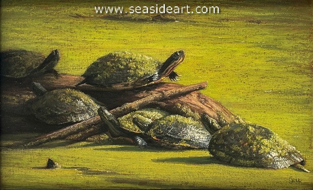 Basking a pastel painting by Lori Goll. The art measures 7 1/2″ x 12″ and the frame is 11″ x ...