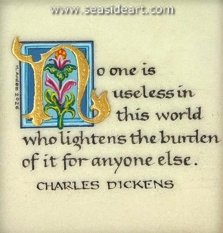 Dicken's Valuable Person a mixed media painting on calfskin vellum by Haley A. Connor (Texas). The art measures 2 3/4"...