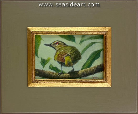 Red-eyed Vireo a pastel painting by Lori Goll. The art measures 4″ x 6″ and the frame is 9 1/2″...