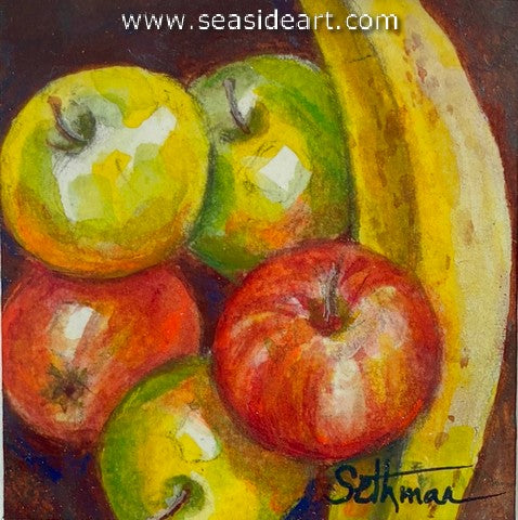 Fresh Fruit a mixed media painting by Elinor Sethman (California). The art measures 2" x 2" and the frame is...